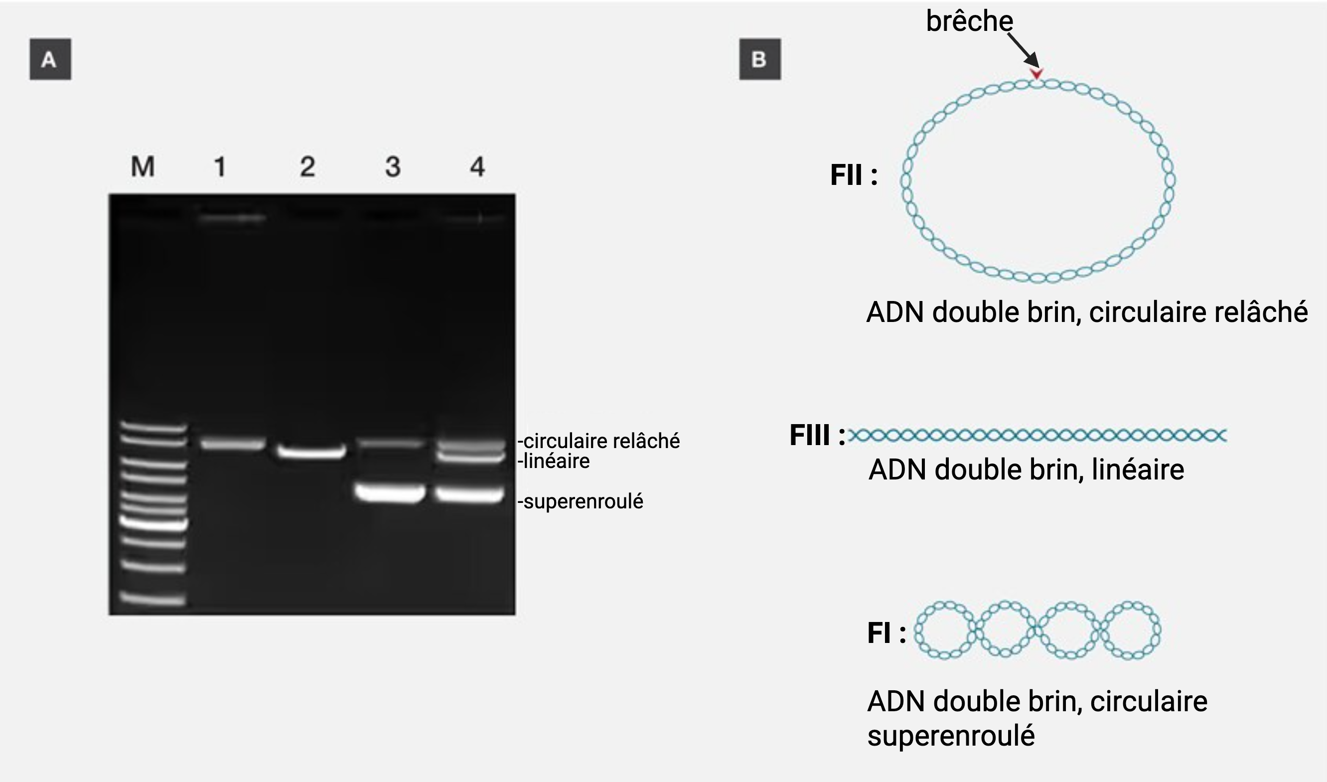 - FII : ADN double brin circulaire, ouvert et relâché.
